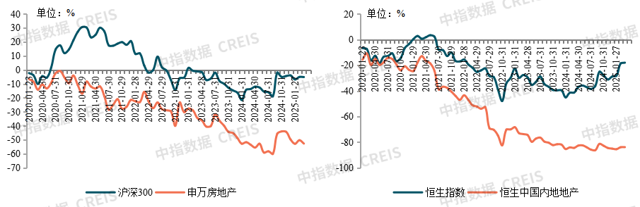2022-2025年一季度房地产板块与大盘涨跌幅度变化情况