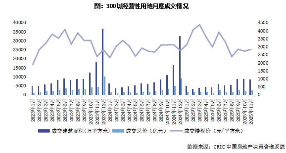 截至11月24日,全国商住办类招拍挂成交建筑面积8604万平方米,其中一线城市上升36%。成交金额方面,一线城市同比上升43%。从市场热度来看,本月溢价率稍有回升,但土拍热度仍集中在少数优质地块,如北京朝阳南磨房、上海浦东川沙等,此外义乌也出现了超高溢价率的优质商办地块。