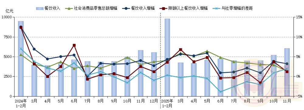 智通财经APP获悉,12月15日,中国烹饪协会发文称,11月份餐饮市场运行总体平稳,延续稳中有进发展态势,但供强需弱矛盾突出,餐饮业发展面临不少挑战。下一阶段,餐饮业要全面贯彻落实中央经济工作会议精神,大力提振消费,扩大国内需求,着力推动“餐饮+”融合发展,创新多元化消费场景。通过科技创新与人工智能赋能,发展新质生产力,提升人效、能效与坪效,鼓励有条件的品牌餐饮企业积极开拓海外市场,持续推动餐饮业高质量发展,更好地服务经济社会发展大局。