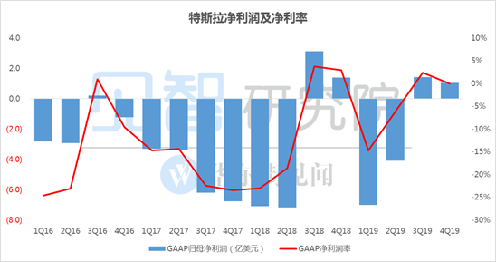 在19Q3意外实现1.4亿美元的归母净利润(GAAP)之后,特斯拉于本季度继续实现了1.05亿元,略低于市场一致预期的1.3亿美元。