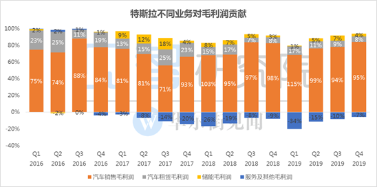 特斯拉核心业务包括①汽车销售、②汽车租赁、③储能(能源生产和存储设备销售)、④服务及其他业务。其中,公司将①、②合并称为汽车板块业务。