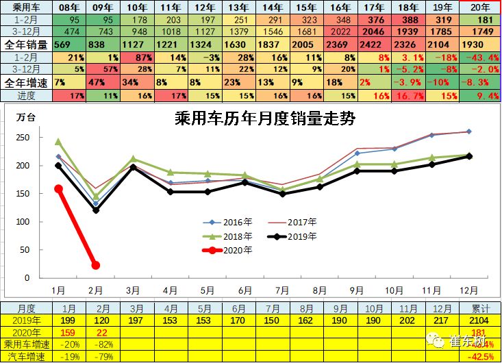 20年累狭义乘用车销量180.69万台,累计增速-44%;2月狭义乘用车销量22.03万台,同比增长-81.8%,环比增长-86.1%。