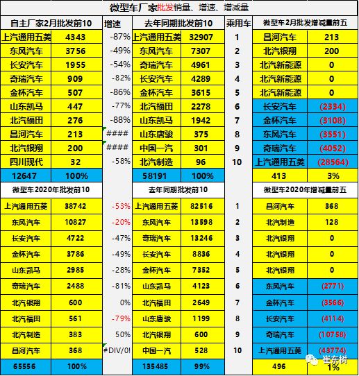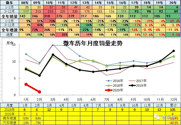 20年累微型车销量6.56万台,累计增速-56.9%;2月微型车销量1.26万台,同比增长-78.3%,环比增长-76.1%。