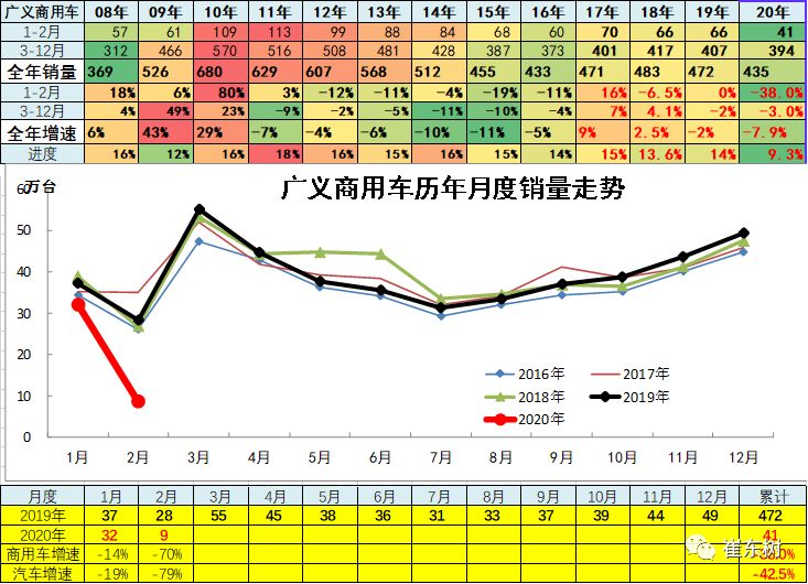 2010年后商用车市场出现持续低迷,但随着环保和投资的旺盛,商用车市场逐步较强。尤其这两年的商务车市场出现企稳回暖的态势,19年商用车相对增长,20年2月的广义商用车销量基本好于乘用车,这也是说明经济环境还是相对较稳的。