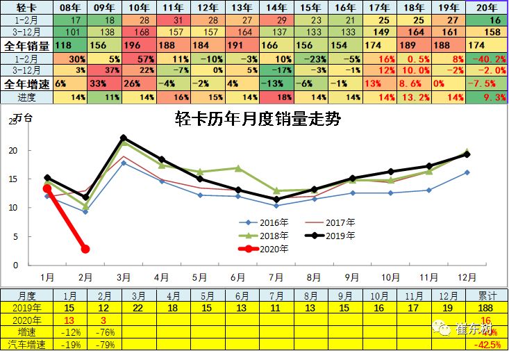 20年累微卡销量4.15万台,累计增速-56.9%;2月销量0.93万台,同比增长-74.7%,环比增长-71.1%。。