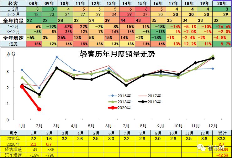 19年全年累计轻客销量33.26万台,累计增速-2.2%;12月销量3.83万台,同比增长-3.7%,环比增长8.1%。。