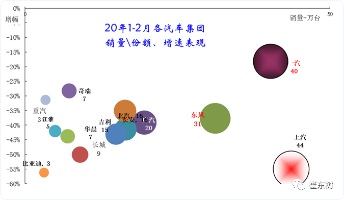 20年车市走势不强,各集团因为优势板块的差异化市场需求而走势分化。