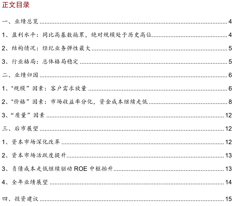 业绩归因:(1)客户需求总体保持高位。上市券商上市券商客户资产规模2.3万亿,较去年末+20 %;日均股基交易量9145亿,同比+47%,环比+85%。IPO、债券承销、两融余额均显著正增长。(2)自有资金投放调整,股票质押规模继续收缩。(3)市场收益率分化,资金成本继续走低。债券市场继续走牛,权益市场明显波动,券商新发债务成本继续下降接近1PCT。