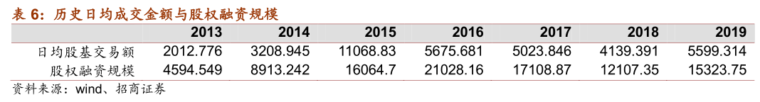 推动融资方式向直接融资转型,健康强化资本市场融资功能需要相对应的市场活跃度。一方面,资本市场全年股权融资规模对应融资供给;另一方面,日均股基交易量反应市场活跃度,体现了资本市场对股权融资的需求。供需匹配的市场,才能健康长久发展。回顾2013年以来,市场日均股基交易金额和年度股权融资规模关系,大体上年度股权融资规模是上限为日均股基交易金额的2.5倍左右。展望全年,1.8万亿股权融资规模对应需要7200亿日均股基交易金额支撑。
