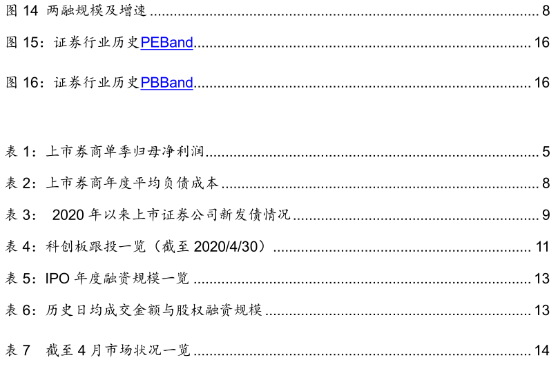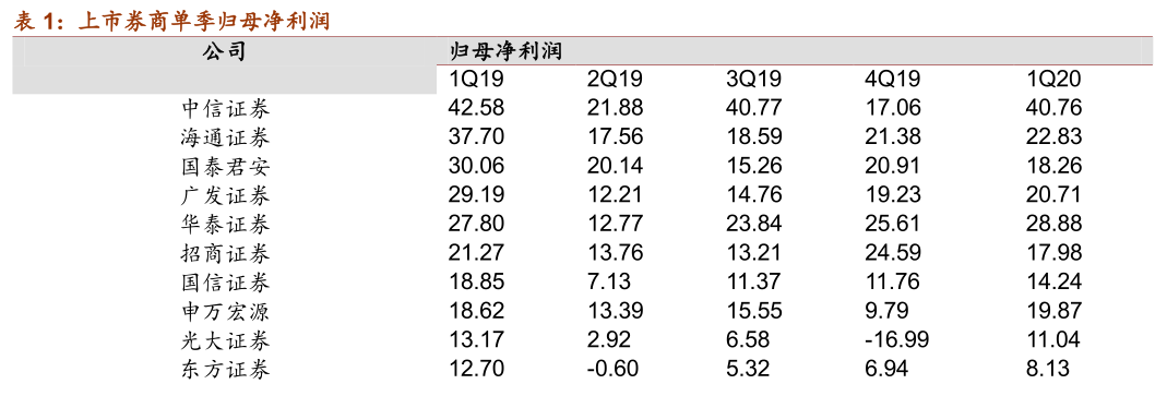 全年业绩保持乐观。今年一季度因公共卫生事件影响,经济活动普遍受到抑制,3月以来权益市场出现大幅波动,叠加去年同期高基数,今年年一季报证券板块总体出现负增长。但我们依然对于全年板块双位数正增长保持乐观,维持行业盈利预测,2020年证券行业实现净利润1520亿元,同比+23%。