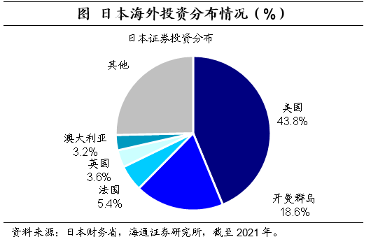 从全球流动性来看,日本是全球海外净投资规模最大的经济体,随着日本货币政策的调整,利率的上行,也可能会带来资金的部分回流,将对日本海外投资资产产生一定扰动。例如,从日本海外投资分布来看,日本证券投资主要集中在美国,尤其是美国的长债。