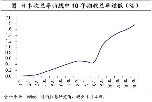 通胀压力的抬升,汇率贬值压力的增加,也加剧了全球交易者做空日本债券资产的情绪。因为如果通胀不降温,利率就很难一直维持在低位,即使现在不加息,未来也要加息。自2022年9月开始,日本10年期国债利率水平持续位于0.25%的上方,明显超出央行之前设定的0.25%上限。而日本央行为了维持YCC政策,不得不持续购债。截至10月,日本央行持有日债的比例已经高达52.3%。根据日本央行公布数据显示,日本央行在去年12月购债规模达到2002年有数据以来新高,去年全年购债规模超过100万亿日元。在12月20日YCC政策调整前,日本15年期到40年期国债利率上行幅度平均超过70BP,而10年期国债利率不到20BP,这说明没有被管理的国债利率水平已经大幅抬升。
