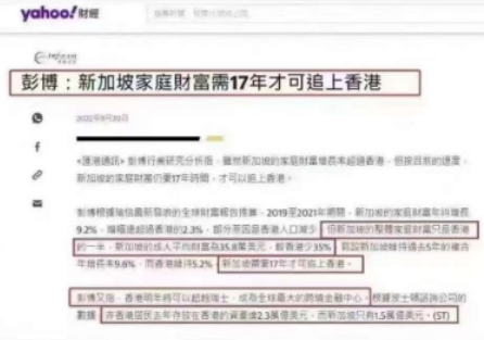 据彭博新闻,新加坡家庭财富需要17年才可追上香港。香港将在2023年超过瑞士,成为全球最大的跨境金融中心和财富管理中心。非香港居民存在在香港的资产达2.3万亿美元,新家坡只有1.5万亿美元。