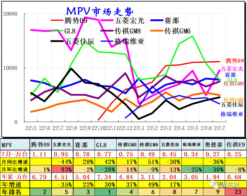 MPV市场2023年7月批发8.46万台,占乘用车批发份额4.1%,批发较去年同期同比增长2%,批发环比今年上月下降10%;2023年7月零售较去年同期同比增长11%,零售环比今年上月增长4%。2023年1-7月批发数量58.6万台,厂家批发销售累计增幅23%;23年1-7月国内零售数量61.46万台,零售累计增幅20%。